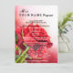 Creada con una tarjeta de 110 lb. semi-gloss para una impresión fotográfica óptima, esta tarjeta de programa de almuerzo de estilo clásico le espera para personalizar con su propia información. Tiene esquinas redondeadas para una apariencia elegante y una foto de fondo de la Rosa Roja. El texto se hace en blanco y negro. La parte posterior se muestra en rojo con texto blanco. Un toque agradable para tu brunch de premios también. Debe personalizar este elemento. Elija estilos de texto, colores, etc.