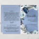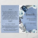Programa de quinceañera con arreglo floral en acuearela en varios tonos de azúl y detalles en imitación de aluminio azul. Uso de elegante caligrafía. Nuestro texto es solo un ejemplo, ya que puedes agregar el información o prefieras. Puedes hacer ajustes de tamaño de texto, color y estilo seleccionando "Seguir personalizando". NOTA: Este programa es enviado plano y REQUIERE QUE LO DOBLE MANUALMENTE en casa. Se recomienda el tipo de papel seleccionado por diseñador. Invitación que coordina disponible. Este programa está disponible también en Inglés. Parte de nuestra Colección "Elegant Blue Watercolor Floral Quinceañera", con・de coordinar・.
