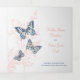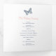 Programa de renovación de seis páginas de bodas o ceremonia de bodas en blanco, azul oscuro, coral, marfil y azul cielo. Edite este programa de bodas con sus propios nombres, fechas, presentación, redacción de la ceremonia, asistentes a la fiesta de bodas, una foto de su primer partido o boda restringido, o una foto de su compromiso, y añada sus propias palabras de agradecimiento al dorso. También hay otros productos bodas y opciones de color que coinciden. Original arte y diseño de mariposa de Sarah Trett para www.mylittleedenweddings.com en Zazzle.