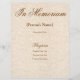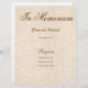 Programa de Servicio Memorial en fondo estilo pergamino con titular In Memoriam en letra cursiva. Personalice todo el texto para una celebración memorial de la vida o programa. Un evento de celebración memorial es una forma maravillosa de compartir recuerdos y rendir homenaje a un familiar o amigo, además o en lugar de un servicio funerario tradicional. Utilice este folleto para diseñar un programa personalizado para cualquier servicio memorial. Por favor, contácteme a través del enlace "creado por" abajo si necesita ayuda con la personalización.