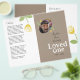 Un nuevo y limpio programa de servicios funerarios o funerarios con estilizados gráficos de rosa amarilla y tipografía de Loved One con "pre-more" en un símbolo infinito. NOTA: Se presentan como una hoja plana. Tendrás que doblarlas tú mismo.