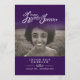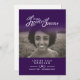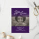 Orden de servicio doble cara simple morado oscuro y blanco en nuestros corazones programa funerario para siempre. Sencillo pero elegante programa, reemplace el texto de muestra y los titulares de fotos con sus propias tres fotos especiales y detalles de información. Tipografía original y en nuestros corazones gráficos y de diseño para siempre de Sarah Trett. www.sarahtrett.com para www.mylittleeden.com (Crédito de la foto de Guilherme Stecanella en la foto modelo Unsplash es sólo una imagen de marcador de posición para que la reemplace).