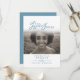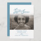 Programa funerario orden de servicio doble cara simple gris azul y blanco en nuestros corazones programa funerario para siempre. Sencillo pero elegante programa, reemplace el texto de muestra y los titulares de fotos con sus propias tres fotos especiales y detalles de información. Tipografía original y en nuestros corazones gráficos y de diseño para siempre de Sarah Trett. www.sarahtrett.com para www.mylittleeden.com (Crédito de la foto de Guilherme Stecanella en la foto modelo Unsplash es sólo una imagen de marcador de posición para que la reemplace).