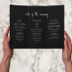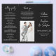 Este folleto sobre el programa de bodas triplias de guion de moda blanca y negra es una manera elegante y funcional de guiar a sus invitados durante su ceremonia. Con una elegante caligrafía de estilo manuscrito y un diseño tripartito limpio y contemporáneo, este programa ofrece un amplio espacio para incluir su orden de eventos, fiesta de bodas, lecturas y notas personales. La paleta clásica de colores blanco y negro le da un encanto intemporal, por lo que es ideal para bodas formales, minimalistas o románticos. Un toque sofisticado que se completa con la suite boda.