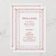 Estos glamorosos programas de bodas cuentan con un moderno giro en el arte clásico del deco. Un marco geométrico y ornamental rojo ornamental ornamentado decora un elegante fondo blanco/plateado muy claro para un aspecto boda dramático, glamuroso y vintage de los años 20, perfecto para su boda de vacaciones Navidades.