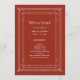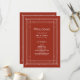 Estos glamorosos programas de bodas cuentan con un moderno giro en el arte clásico del deco. Un marco geométrico luminoso, adornado con motivos geométricos y ornamentales en color blanco y plateado adornan un elegante fondo rojo festivo para una mirada boda dramática, glamurosa y vintage de los años 20, perfecta para el boda de vacaciones de sus Navidades.