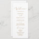 Este delicado programa de bodas de caligrafía dorada es perfecto para un boda moderno. El romántico diseño minimalista presenta una encantadora y elegante tipografía de champán amarillo dorado sobre un fondo blanco con un aspecto limpio y sencillo. Incluya el nombre de la novia y el novio, la fecha y ubicación del boda, el mensaje de agradecimiento, el orden de servicio, la fiesta de novias y un monumento opcional "en memoria amorosa".