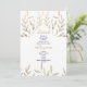 Este espléndido diseño de invitación a la boda incluye encantadoras invitaciones al programa de detalles de Bodas florales y florales con dibujos blancos y dorados de lujo, ideales para cualquier ceremonia elegante y sofisticada. Estas exquisitas y elegantes hojas florales son perfectas para parejas de diseño. Personalizar este diseño con su mensaje e información personalizada. Todos los diseños están impresos.