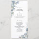 This dusty blue wedding ceremony program features a soft watercolor floral design with a clean, elegant vertical layout.