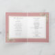Con delicadas hojas de color agua verde sobre un polvoriento fondo rosa, este programa de bodas botánicas de moda puede ser personalizado con su información especial del día de la boda. Diseñado por Thisisnotme©