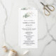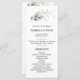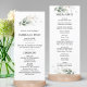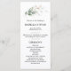 Entrega estas elegantes tarjetas para el programa de la ceremonia en tu ceremonia boda / servicio de la iglesia. Hojas botánicas de oro verde acuarela. La parte delantera de la tarjeta tiene la lista del programa de la ceremonia, la parte trasera de la tarjeta tiene la lista de la fiesta de boda y una nota de agradecimiento de la novia y el novio. Perfecto para cualquier tema de boda de invierno.