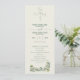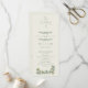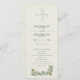 Guide your guests through your special day with this minimalist green floral wedding program card, featuring a clean ivory background, classic serif fonts, and soft sage typography for a timeless look. Delicate botanical blooms frame the bottom of both sides, adding a romantic garden touch that suits vineyard, countryside, and outdoor ceremonies. One side lists your wedding party, officiant, parents, attendants, flower girl, and ring bearer—alongside a heartfelt thank-you message, while the reverse outlines the full order of ceremony so guests can follow each moment with ease. Fully customizable text allows you to personalize names, roles, date, venue, and wording, creating a coordinated keepsake that complements the rest of your green botanical wedding stationery.