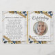 Personalizar este moderno y elegante programa funerario con tu propia foto y texto para crear un homenaje especial a tu Amado. Programa "In Loving Memory" que incluye una cinta azul con efecto 3d y un programa conmemorativo de acentos dorados. En la portada hay una foto de tu ser querido, su nombre, fechas, el lugar de la conmemoración y la fecha del evento. En el interior hay un obituario y un orden de servicio, y en la parte trasera hay una nota de agradecimiento y el local de la Nuestra tienda también ofrece otros diseños que están ofreciendo vegetación botánica con rosas y hojas diseño y acentos purpurinas/dorados y follaje Eucalyptus para satisfacer todas las demandas.