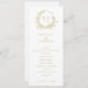 Timeless and sophisticated, these white and gold wedding programs showcase an elegant vintage crest with your wedding logo on the front and a graceful calligraphy script throughout. The order of service is beautifully arranged, with the wedding party, parents’ names, thank-you message, and reception details printed on the back. Perfect for couples seeking classic, gold wedding programs with refined charm.
