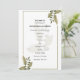 The design combines a refined typographical layout with subtle, soft-colored greenery to create a sophisticated and understated look. The lettering may feature an elegant script font to add a touch of romance. This is part of a complete set.