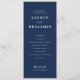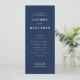 This elegant wedding program features a classic, vertically oriented layout with a deep navy blue background and crisp white text. The design showcases a sophisticated serif font for the main headings and a stylish cursive script for the word "and," adding an element of refinement. Organized sections detail the ceremony components, ensuring clarity and formality, while the overall mood exudes celebration and tradition, perfect for a formal wedding setting.