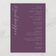 This wedding program features a sophisticated deep purple background with elegant cursive and clean sans-serif typography, creating a formal yet inviting atmosphere. The layout is vertically oriented, with decorative geometric lines adding a modern touch to the classic design. Perfect for weddings, it includes customizable sections for ceremony details while maintaining a cohesive and stylish look. The use of negative space highlights key information, ensuring readability and a polished appearance ideal for significant celebrations.