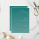 This wedding program features a minimalist and elegant design with a vertical layout, centered alignment, and ample negative space. The background showcases a gradient of teal hues transitioning from dark to light, creating a serene atmosphere. The typography includes a mix of cursive for the welcoming greeting, bold serif for the names, and clean sans-serif for event details, ensuring readability and sophistication. Perfect for couples seeking a modern and uncluttered aesthetic, this design captures the formal yet inviting mood of a significant life celebration.