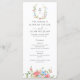 Elegant and timeless, this wildflower wedding program features soft watercolor florals in blush, blue, and golden hues for a romantic garden-inspired look. A delicate floral monogram crest at the top pairs beautifully with classic serif typography and graceful script accents, creating a refined and cohesive design.