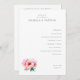 This is a minimalist style image featuring an elegant wedding ceremony program for Isabella & Patrick. The design is clean and sophisticated, with soft pink peonies adding a touch of romance to the bottom left corner. The text is neatly organized, listing the ceremonial proceedings in a simple yet graceful font. It exudes a warm and inviting atmosphere, perfect for marking this special occasion. Ideal for couples who appreciate understated elegance and want their guests to feel welcomed and informed.