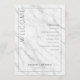This elegant wedding program features a sophisticated marble-like background in shades of white and gray, creating a timeless and refined aesthetic. The layout is clean and balanced, with the word "WELCOME" prominently displayed vertically on the left side, while the right side outlines the ceremony schedule in an organized, centered format using serif fonts that add a touch of tradition. Customizable placeholders for names and dates are seamlessly integrated at the bottom, ensuring personalization without detracting from the minimalist design. The overall mood is one of formality and anticipation, making it perfect for a classic and memorable wedding ceremony.