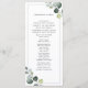 Programa Elegante de Boda de Agua Eucalyptus Greenery Wedding. El diseño presenta un marco elegante con un eucalipto acuarela, un monograma. Esta plantilla incluye espacio para los detalles de la ceremonia y al revés toda la información de la fiesta de boda. Personalice la información con los campos de plantilla proporcionados.