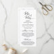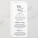 Sr. y Sra., Elegant Modern Romantic Black script, Boda Ceremony Program card. Está diseñado con acento de desplazamiento que puede ser personalizado con texto personalizado/ personalizado para su fiesta nupcial, detalles de la ceremonia, notas conmemorativas y mensaje de agradecimiento. Si está buscando otros tipos y tamaños de tarjetas de programa, busque en nuestra sección de colección de tarjetas de programa correspondiente.