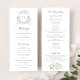 Elegante Programa de Boda Monograma Escudo Floral de Vegetación Blanca. Orden de servicio tradicional del Boda. Programa Escudo de monograma de color azul turbio y color de agua
