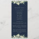 Un oscuro programa de bodas de invierno de la marina/orden de ceremonia, con una lista para una pequeña fiesta de bodas y un mensaje de agradecimiento. Con arreglos de nieve pintada a mano y eucalipto. Todo el texto es completamente editable. Por favor, vea esta colección en mi tienda para programas con textos/diseños alternativos y en diferentes tamaños/colores/formas. También hay elementos de coordinación disponibles.