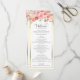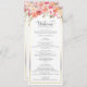 Este elegante programa de bodas cuenta con un ramo de flores acuáticas de color rosa y melocotón con un marco dorado, que incluye el nombre de la novia y el novio, la fecha y el lugar del boda, el orden de la ceremonia y la fiesta de bodas.