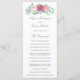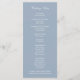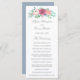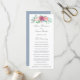 Programa romántico de bodas con un huerto de flores compuesto por rosas rosa pastel y malva. Tus eventos de ceremonia están en la parte delantera y tu fiesta de boda está en la parte trasera sobre un polvoriento fondo azul. Este diseño floral es ideal para una celebración en primavera.