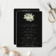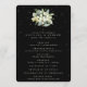Un programa de boda negro/orden de ceremonia, con un listado para una pequeña fiesta de boda y un mensaje de agradecimiento en la parte trasera. Con un elegante ramo/poste de bolas de nieve pintadas a mano y eucalipto y una dispersión de puntos. Todo el texto es completamente editable. Por favor, vea esta colección en mi tienda para programas con textos/diseños alternativos y en diferentes tamaños/colores/formas. También hay elementos de coordinación disponibles.