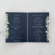 Un oscuro programa de boda de invierno doblado por la marina/orden de ceremonia. Con bayas de nieve pintadas a mano y eucalipto y una dispersión de puntos. Todo el texto es completamente editable. Por favor, vea esta colección en mi tienda para programas con textos/diseños alternativos y en diferentes tamaños/colores/formas. También hay elementos de coordinación disponibles.