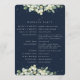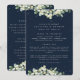 Un oscuro programa de boda de invierno de la marina/orden de ceremonia, con un esquema de ceremonia condensada y mensaje de agradecimiento en la parte delantera y una lista para una gran fiesta de boda al revés. Con un borde de bayas de nieve pintadas a mano y una dispersión de puntos. Todo el texto es completamente editable. Por favor, vea esta colección en mi tienda para programas con textos/diseños alternativos y en diferentes tamaños/colores/formas. También hay elementos de coordinación disponibles.
