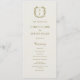 Elegante programa clásico de Bodas en Monograma Escudo Dorado. Un programa de bodas clásico con un diseño elegante presenta un fondo de marfil de moda y un texto dorado elegante. El programa de bodas está decorado con un hermoso monograma. Es perfecto para celebraciones bodas de cualquier estilo.