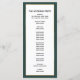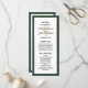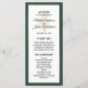 Proporcione a sus huéspedes este elegante diseño de programa de bodas con escritura moderna, texto negro, árbol de Navidad estrellado, oro metálico y borde verde esmeralda. Personalizar con tus nombres, fecha boda, mensaje de agradecimiento y detalles de la ceremonia. Los nombres de los matrimonios están en la parte de atrás. Perfecto para un invierno o un boda Navidad.