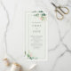 Este bonito programa de bodas presenta un exquisito motivo botánico con delicados florales blancos y ruidosos y un frondoso follaje verde sobre un suave fondo verde pálido. El diseño limpio presenta la fiesta de boda y el orden de la ceremonia en un estilo serif moderno y fácil de leer, bordeado por un marco sutil y fino. Los acentos de las flores acuáticas de cada rincón añaden un toque romántico y natural, perfecto para los bodas al jardín, primavera o al aire libre. La parte delantera muestra los nombres de la pareja, junto con una orden detallada de la ceremonia. El reverso enumera la fiesta de boda completa, que incluye a un funcionario, padres, criada de honor, mejor hombre, dama de honor, padrinos, padrinos, chica de flores y portador de anillo. Esta plantilla es totalmente personalizable para sus propios nombres y detalles. Ideal para las parejas que buscan una apariencia fresca, elegante e inspirada en la naturaleza para su papelería boda.