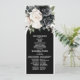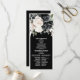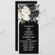 Guía a tus invitados a través de tu día especial con nuestro Programa de Boda Floral Negro y Blanco Elegante. Este programa bellamente diseñado muestra elementos florales intrincados en un esquema de color negro y blanco atemporal, que complementa perfectamente tu tema de boda mientras proporciona información esencial.