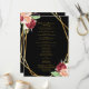 Deléitese con un programa de bodas llamativo y elegante que presenta un marco elegante y geométrico de oro con una decoración elegante con hermosas flores borgoñas y blancas. Tipografía de oro sobre un fondo elegante para todos los detalles del programa de boda.