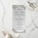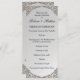 Un bonito programa de bodas plateadas de aspecto metálico, con un marco de diseño de encaje falso-metalizado muy decorativo en la parte superior e inferior. Todos los detalles de ambos lados de la tarjeta se pueden personalizar fácilmente en el vínculo Personalizar la plantilla anterior.