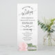 Este hermoso programa de bodas presenta un diseño elegante con un único rosa de color rosa rosa rosa pálido de tallo largo sobre el fondo del agua. Los títulos están escritos en sofisticada caligrafía de escritura, y hay espacio para tu ceremonia y detalles de la fiesta de boda, así como un breve agradecimiento para tus invitados. Una forma maravillosa de dar la bienvenida a sus amigos y familiares a la celebración de su boda.