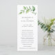 Programa de boda rústica con un diseño simple que incluye un brote pintado con acuarela verde de hojas grandes, sobre un fondo blanco. La parte delantera tiene los eventos de su ceremonia y la parte trasera tiene a su cortejo nupcial. Un diseño botánico elegante ideal para una celebración en verano.