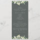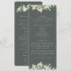 Un programa/orden de ceremonia de boda verde oscuro, con un esquema de ceremonia condensada y un mensaje de agradecimiento en la parte delantera y una lista para una gran fiesta de boda al revés. Con un borde de bayas de nieve pintadas a mano y eucalipto en la parte delantera y un tallo en la parte trasera. Todo el texto es completamente editable. Por favor, vea esta colección en mi tienda para programas con textos/diseños alternativos y en diferentes tamaños/colores/formas. También hay elementos de coordinación disponibles.