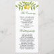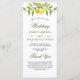 Elegante Programa de Ceremonia de Boda de Verdor Lemons. Utilice los campos de plantilla para agregar la información de la ceremonia y de la fiesta nupcial y, a continuación, haga clic en "Personalizar" para cambiar la posición de los elementos si fuera necesario. ¿Necesitas ayuda? Contáctame a través del enlace "Preguntar a este diseñador" en esta página.