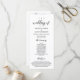 Elegante Guión negro clásico, tarjeta de programa de ceremonia Boda. Está diseñado con acento de desplazamiento que puede ser personalizado con texto personalizado/ personalizado para su fiesta nupcial, detalles de la ceremonia, notas conmemorativas y mensaje de agradecimiento. Si está buscando otros tipos y tamaños de tarjetas de programa, busque en nuestra sección de colección de tarjetas de programa correspondiente.