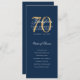 Diseño elegante del "programa de la fiesta de cumpleaños" con una tipografía formal en oro y azul marino con texto personalizado del programa+menú+agradecimiento.