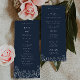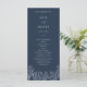Elegante y moderno programa de bodas floridas en azul marino es perfecto para una boda de invierno. El texto puede ser simplemente personalizado según sus necesidades. Puede encontrar artículos coincidentes en nuestra tienda VelvetPaperCo.