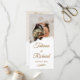 Este elegante programa de bodas cuenta con un espacio para una fotografía tuya y de tu futura esposa, y texto en un clásico y sofisticado guión de oro.