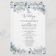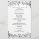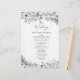 Este elegante Programa de Bodas de nuestra colección Floral Presionada Azul Dusty cuenta con bonitas flores acuáticas con delicados viñedos de vegetación, emparejadas con un moderno tipo de letra de escritura. Perfecto para cualquier temporada. Para realizar cambios avanzados, seleccione Personalizar -> Editar usando la herramienta Diseño.