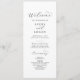 Este elegante programa de bodas de guiones es perfecto para un simple boda. El diseño minimalista en blanco y negro presenta una elegante tipografía romántica con un estilo moderno de cristal. Personalizable de cualquier color. Mantenga el diseño minimalista y elegante, como está, o lo personalice añadiendo sus propios gráficos y obras de arte. Incluya el nombre de la novia y el novio, la fecha y ubicación del boda, el mensaje de agradecimiento, el orden de servicio, la fiesta de novias y un monumento opcional "en memoria amorosa".